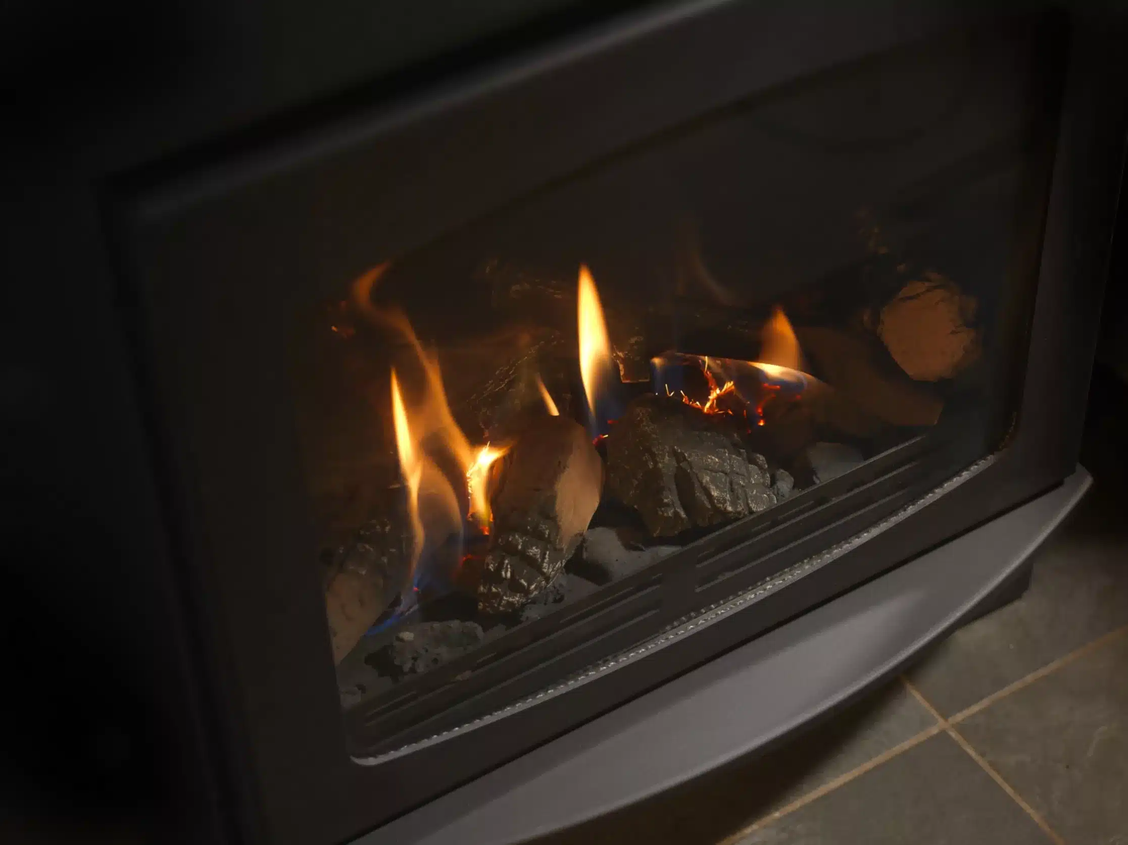 The Wychwood gas stove provides an impressive heat output of 6.1kW and boasts a high efficiency rating of 85% allowing for large sized living spaces to be heated with ease. Supplied with realistic ceramic logs its hard to tell this isnt a real wood burner, the logs provide an impressive flame effect when lit but also look authentic when the stove isn’t being operated.