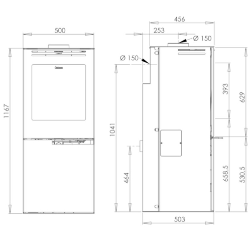 ItemAduro H5Warranty:5 Years – When registered http://www.adurofire.com/warrantyNominal Power:7 kW Firewood / 6.8 kW Wood pelletsOperational Power:2-9 kW (Firewood 3-9 kW / Wood pellets 2-7 kW)Weight:132 kgFlue Diameter:150mm Top/RearMax Log Length:37 cmDistance to combustibles:5 cm (from air intake) / 7 cm (from the back of the stove) Sides: 37,5 cm Furniture: 100 cmDimensions (HxWxD):116.7 x 50.3 x 50.6 cmEfficiency:85% Firewood / 91% Wood pelletsAduro-tronic:Yes