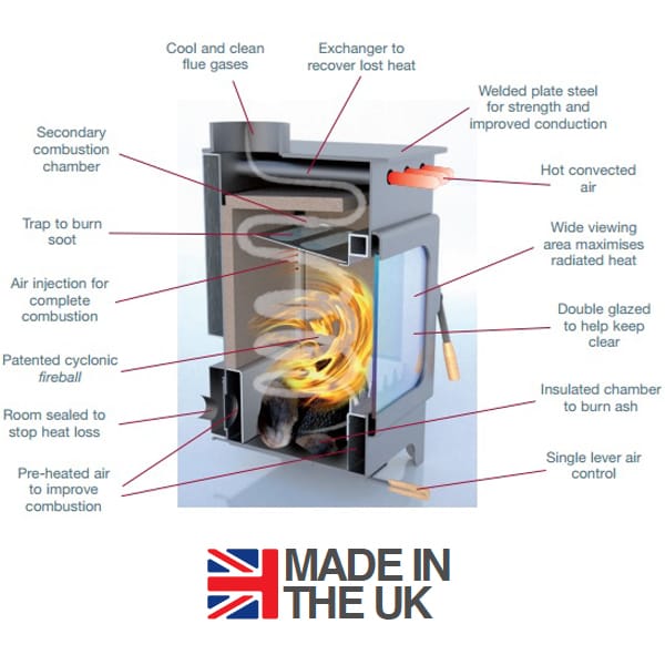 • Meets all the latest EcoDesign emissions and particulates standards, DEFRA-approved for use in smoke control areas throughout the UK