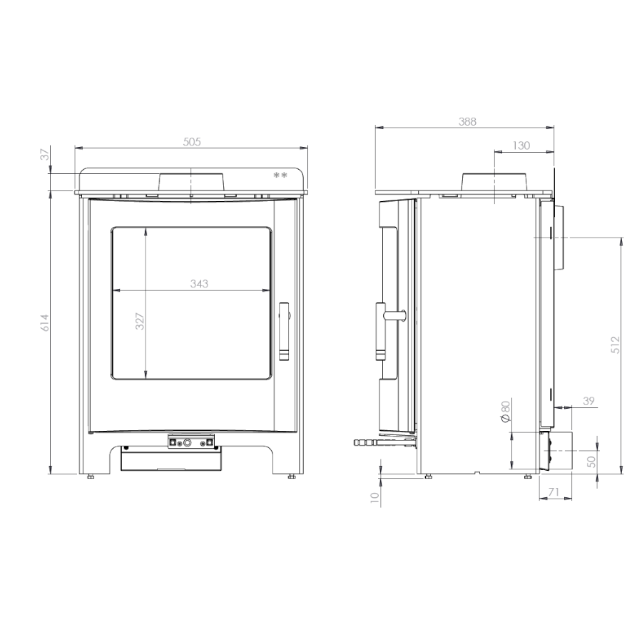 | Distance to centre of top flue outlet from back of stove | 130mm |