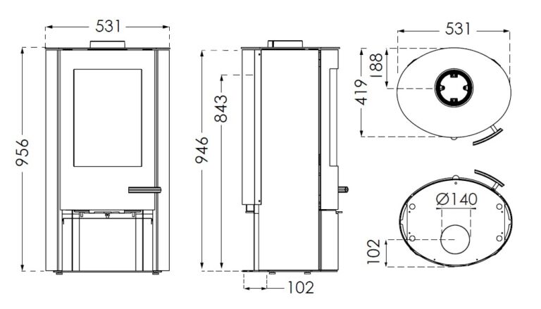 The choice is between straight or round steel sides, and all TT20 models can be connected to the chimney backwards or upwards. The combustion chamber bottom and the inner frame of the door are made of cast iron, which provides stability and long life.