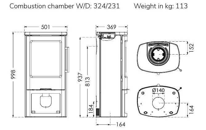 With its compact size and elegant design, the TT44 is ideal for smaller spaces without compromising on heating efficiency. The rounded shape and the semi-open wood compartment add both beauty and practical functionality to your home. Whether placed in a corner or against a wall, the TT44 will be a stylish focal point.